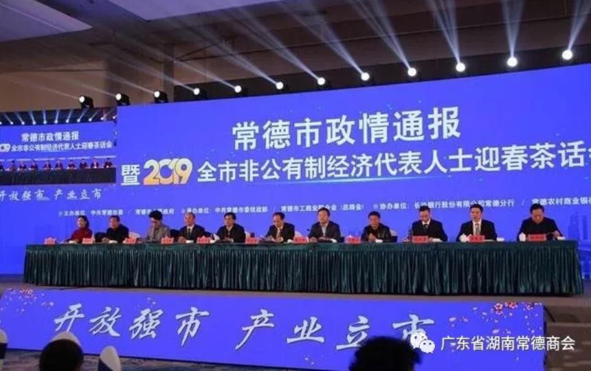 1月2日,雪后初霁,万象更新。常德市政情通报暨2019全市非公有制经济代表人士迎春茶话会在常德共和酒店会议中心召开。我会荣获常德市工商联2018年度先进异地常德商会称号,会长罗志祥、执行会长黄建军受邀参加。