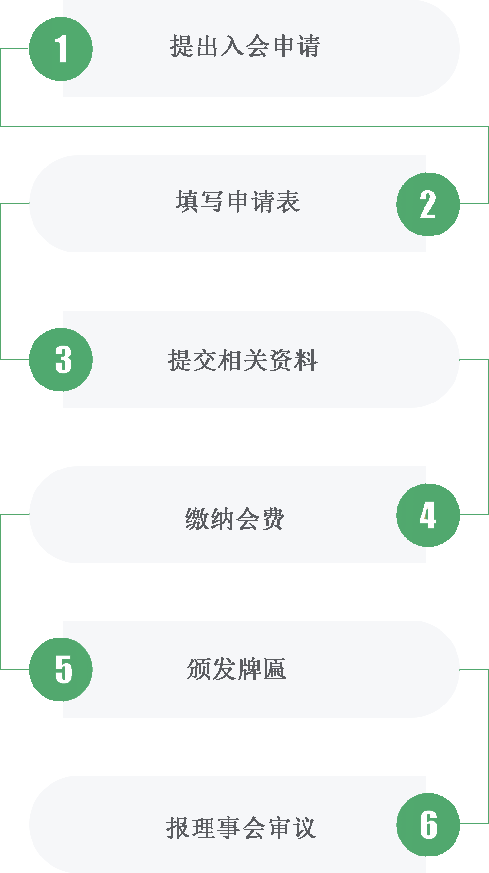 提交资料>审核通过>缴纳会费>成为会员