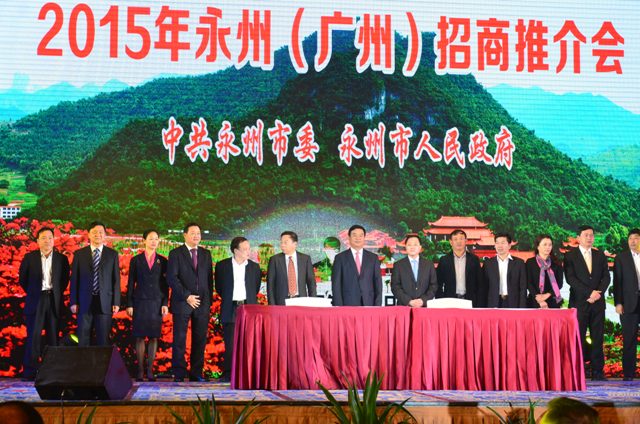 2015年1月18日下午,广东省湖南商会年会暨永州招商推介会在广州东方宾馆举行,全国各地企业代表、副省长何报翔,省政府副秘书长王光、市委书记陈文浩致辞,市委副书记、市长向曙光主持。我会会长罗志祥,常务副会长王康健、向莉、陈生信等领导参加。