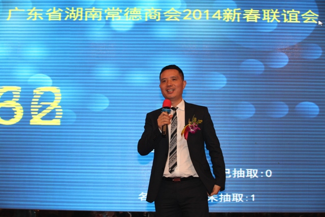2014年1月12日晚,我会2014年新春联谊会在广州凯港精品酒店圆满落下帷幕。常德市人民政府副市长匡加才等家乡领导、广州市公安局原副局长李卫平等广东地区嘉宾、我会会长罗志祥、执行会长帅先保、水群强等商会领导及会员,以及来自兄弟商会和赞助商代表近三百人莅临会场。