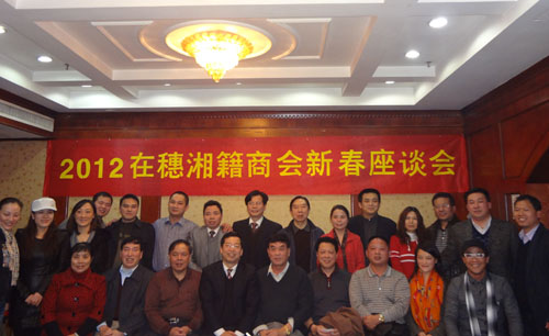 2012年1月11日晚,2012在穗湘籍商会新春座谈会在湖天宾馆举行。这是在穗湘籍商会首次举行新春座谈会,该活动由长沙商会发起,召集了包括我会在内的五家商会代表参加。会议由长沙商会的常务副会长陈克宇主持。会上,相关人员做了主题讲话,各与会人员就商会发展的诺干问题展开热烈讨论。 帅先保常务副会长代表我会向各位商会献上新春的祝福,并感谢各兄弟商会对给予我会的关心和帮助。帅副会长表示,我会刚刚成功举办成立大会,这只是万里长征走完了第一步,接下来,我会将协助会员拓展融资渠道,组织参与投资项目,创造并提升商会的造血功能。 广东省湖南商会会长刘征国、张家界商会伍金春书记、长沙商会代表程宇、湖南省政府驻广州办事处招商合作处黄处长均作了主题发言并得到与会人员的热烈响应。